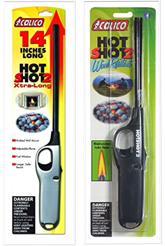 All images of 2 Pack Combo - Calico Hot Shot 2 Xtra Long and Standard Wind resistant Lighter Safe for Camping/grilling/home, Adjustable Flame